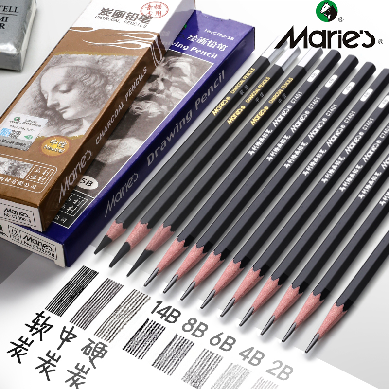 Marco S 12pcs Charcoal Pencil For Sketch Painting Soft Medium Hard