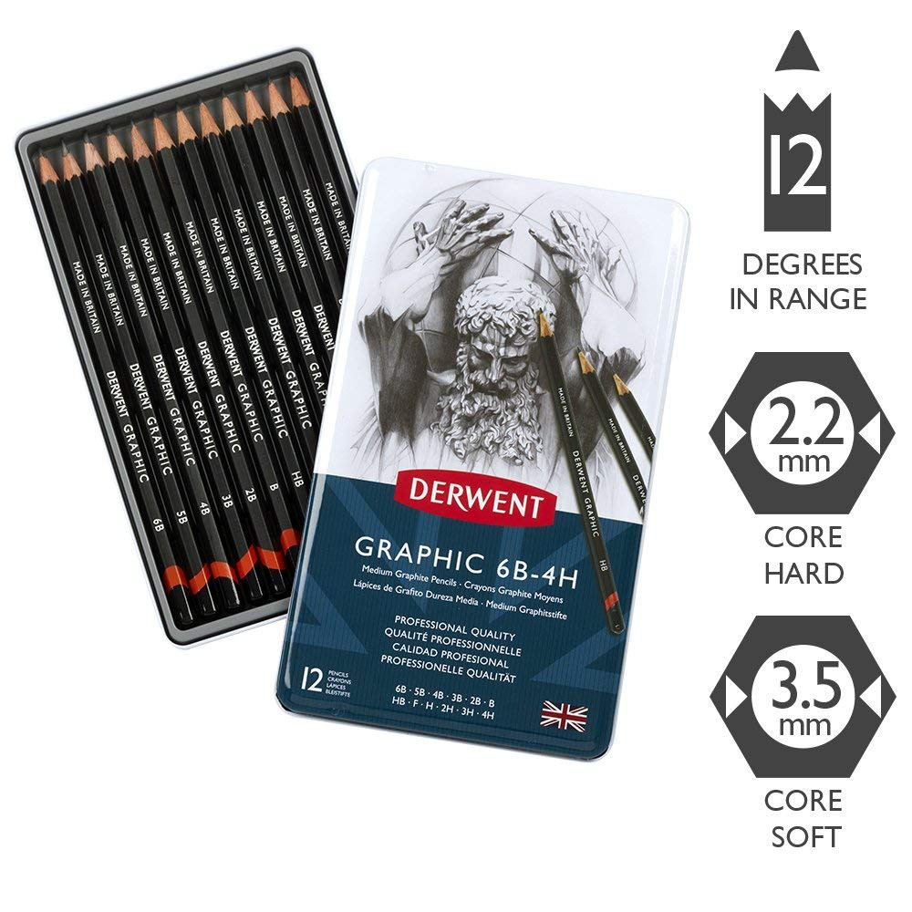 Medium Graphic 6b 4h Pencils 12 Tin Set Derwent Array