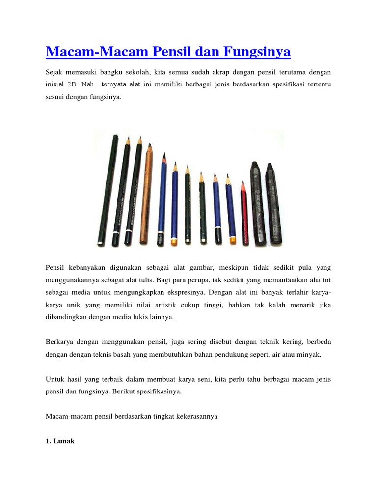 Jenis Jenis Pensil Dan Fungsinya