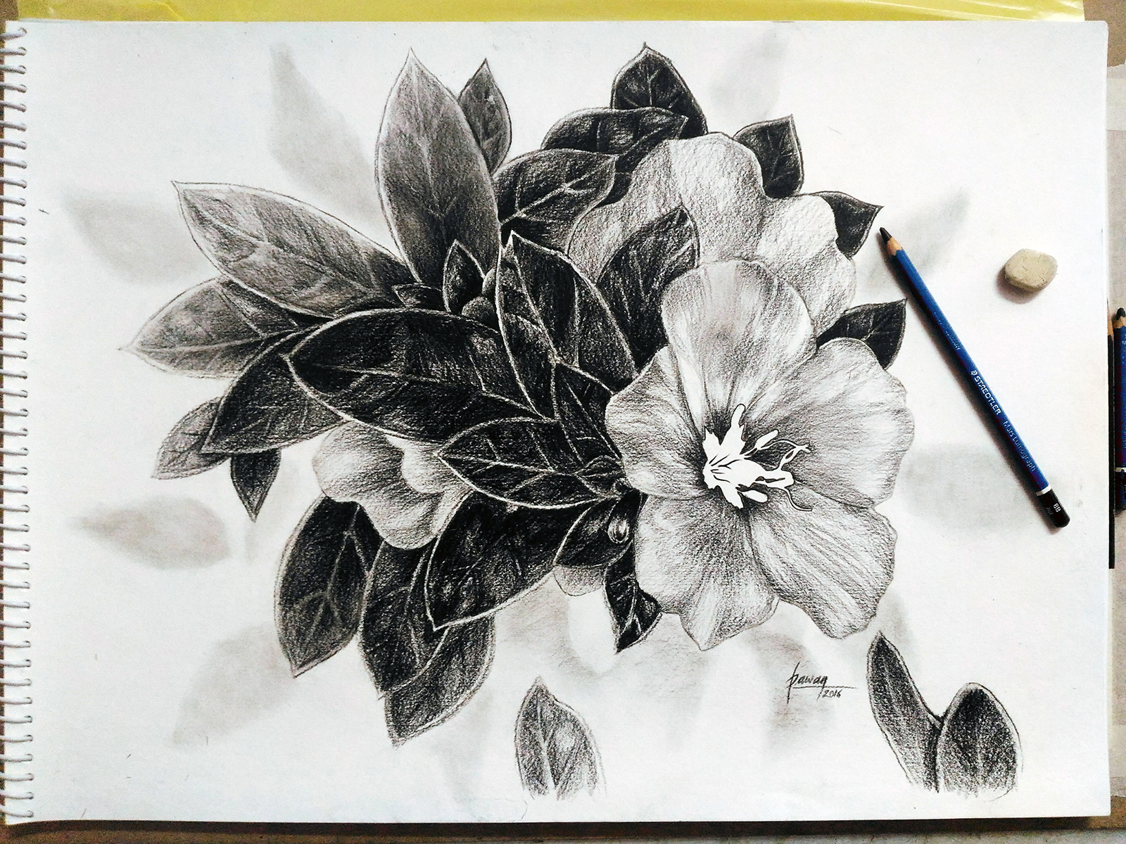 Simple Graphite Flower Drawing