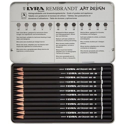 Lyra Rembrandt Art Design Graphite Pencils Tin Of 12 Pencils
